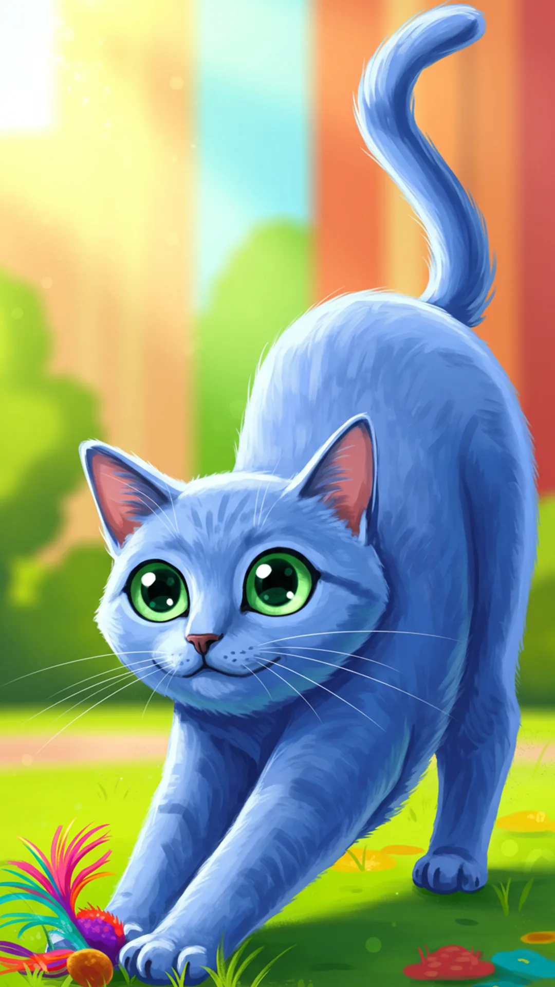 أصبحت صور القط الأزرق الروسي مصدر إلهام لعشاق الرسوم الكرتونية والأنمي، حيث يتم تصميمها بأساليب فنية تضفي عليها طابعاً خيالياً وظريفاً. هذه الخلفيات لا تقتصر على الشكل الواقعي للقط، بل تقدم نسخاً إبداعية تعكس ملامحه في أسلوب أنمي أو كرتون يناسب مختلف الأذواق، خصوصاً الفتيات ومحبي الرسوم الحديثة.