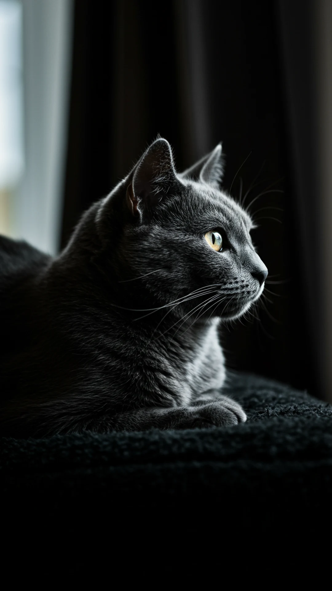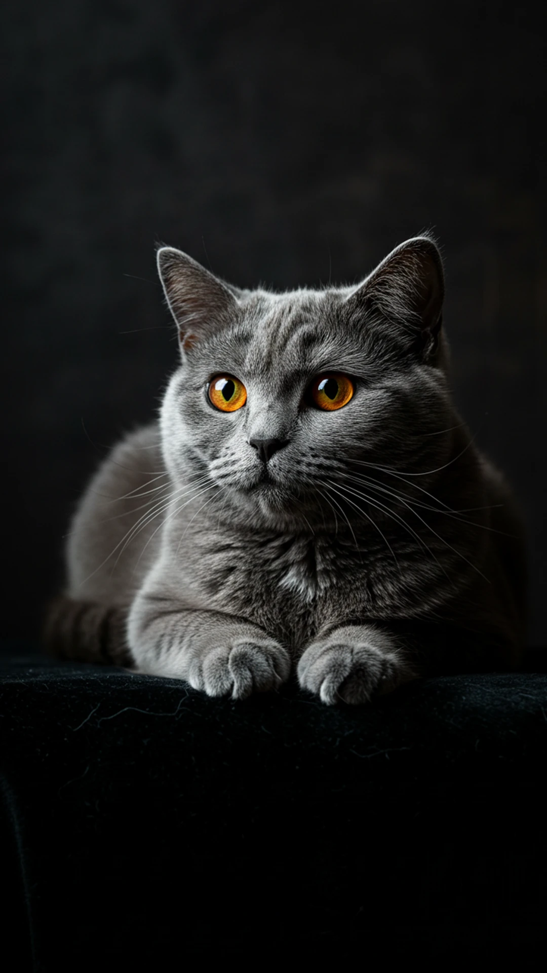 على عكس الخلفية البيضاء، تمنح الخلفية السوداء للقطط الشارتروه مظهراً أكثر عمقاً وأناقة. يتباين اللون الرمادي للفراء مع الخلفية الداكنة بشكل يضفي فخامة خاصة على الصورة، مما يجعلها خياراً رائعاً لمحبي الطابع الكلاسيكي أو الخلفيات الليلية.