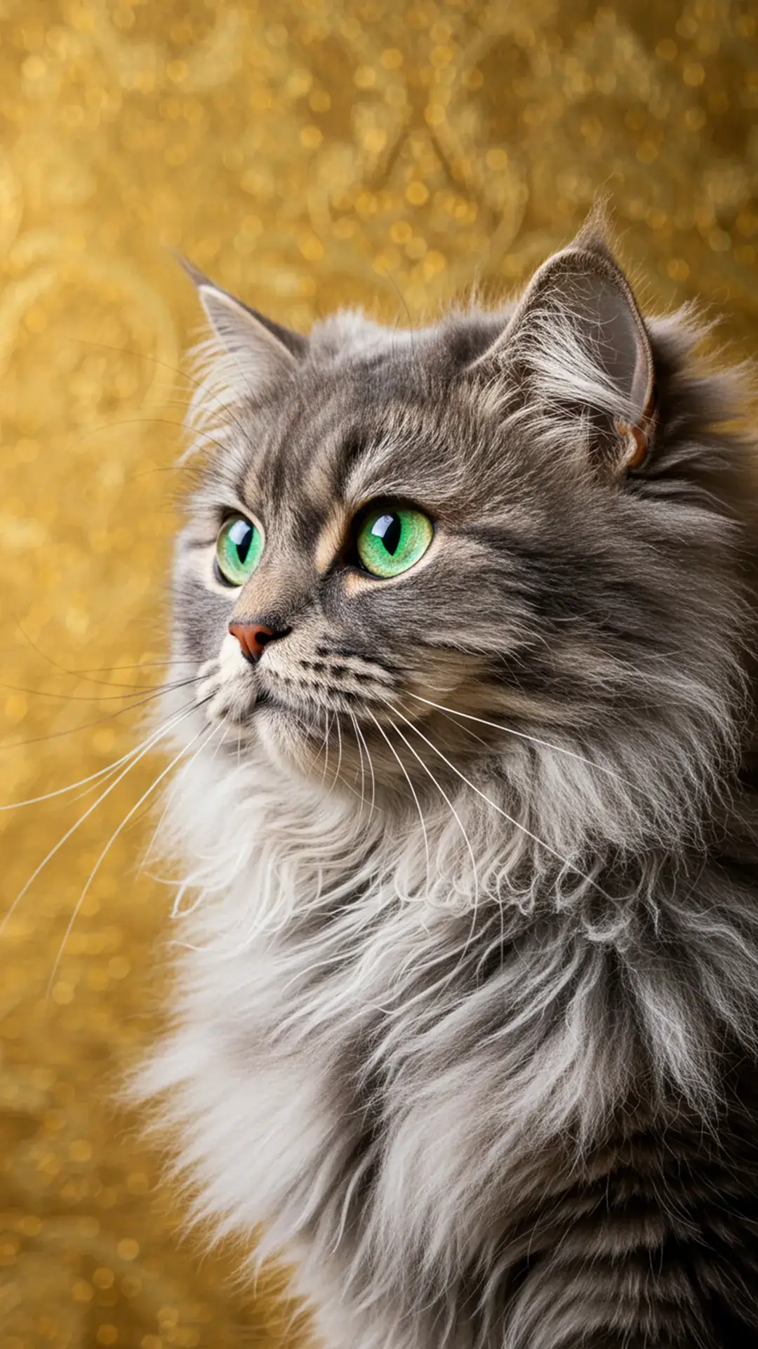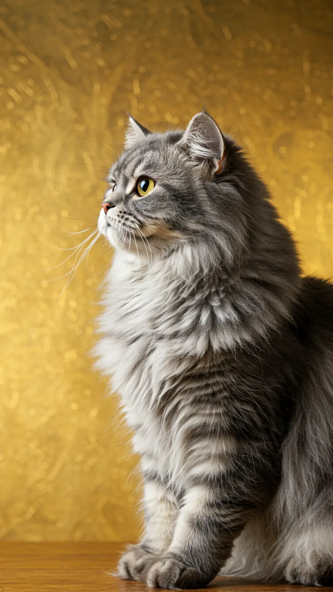 اللون الرمادي يرمز إلى الرقي، أما الذهبي فيدل على الفخامة والدفء. عند الجمع بين هذين اللونين وفراء القطط الشيرازي الكثيف، تنتج خلفيات تضج بالأناقة والتميز. هذه الفئة تستهوي الشباب ومحبي الأسلوب الراقي، وتُستخدم كثيرًا في خلفيات الكمبيوتر أو خلفيات AMOLED.