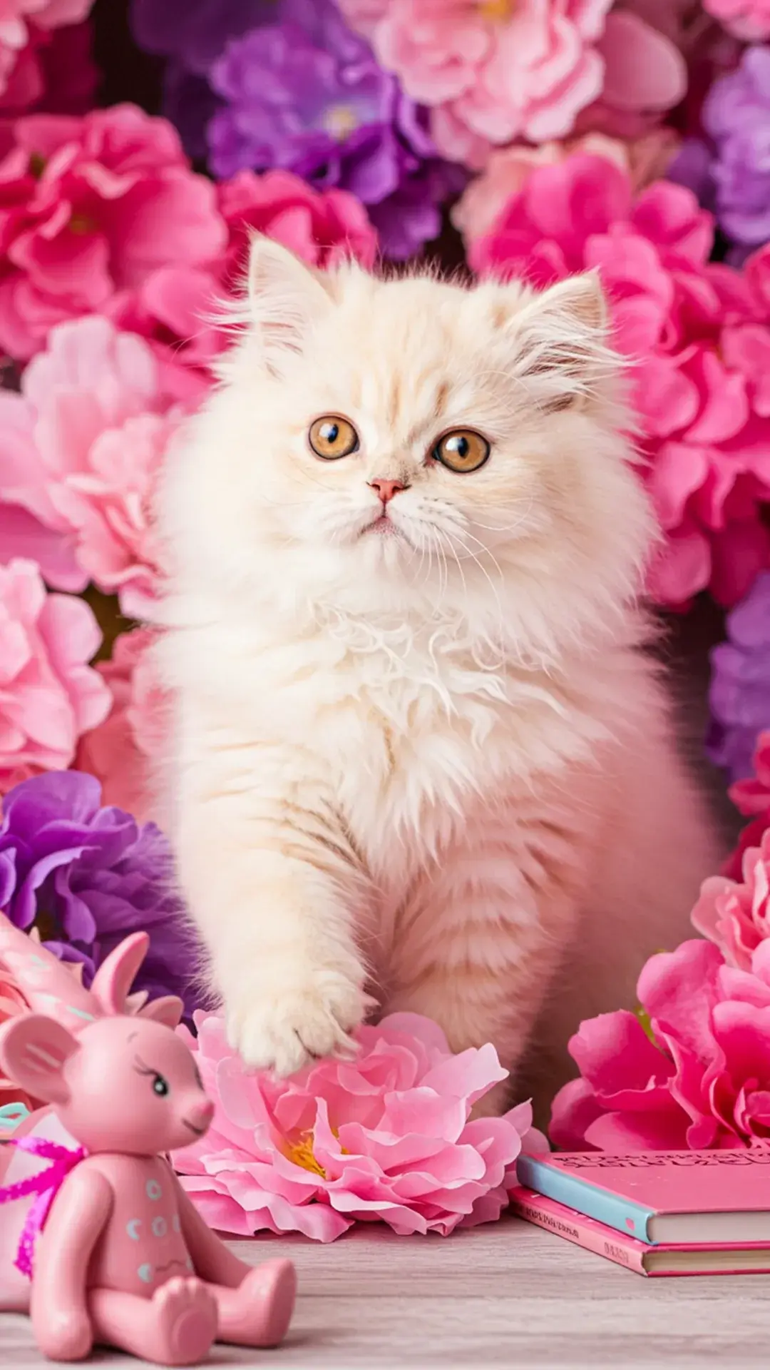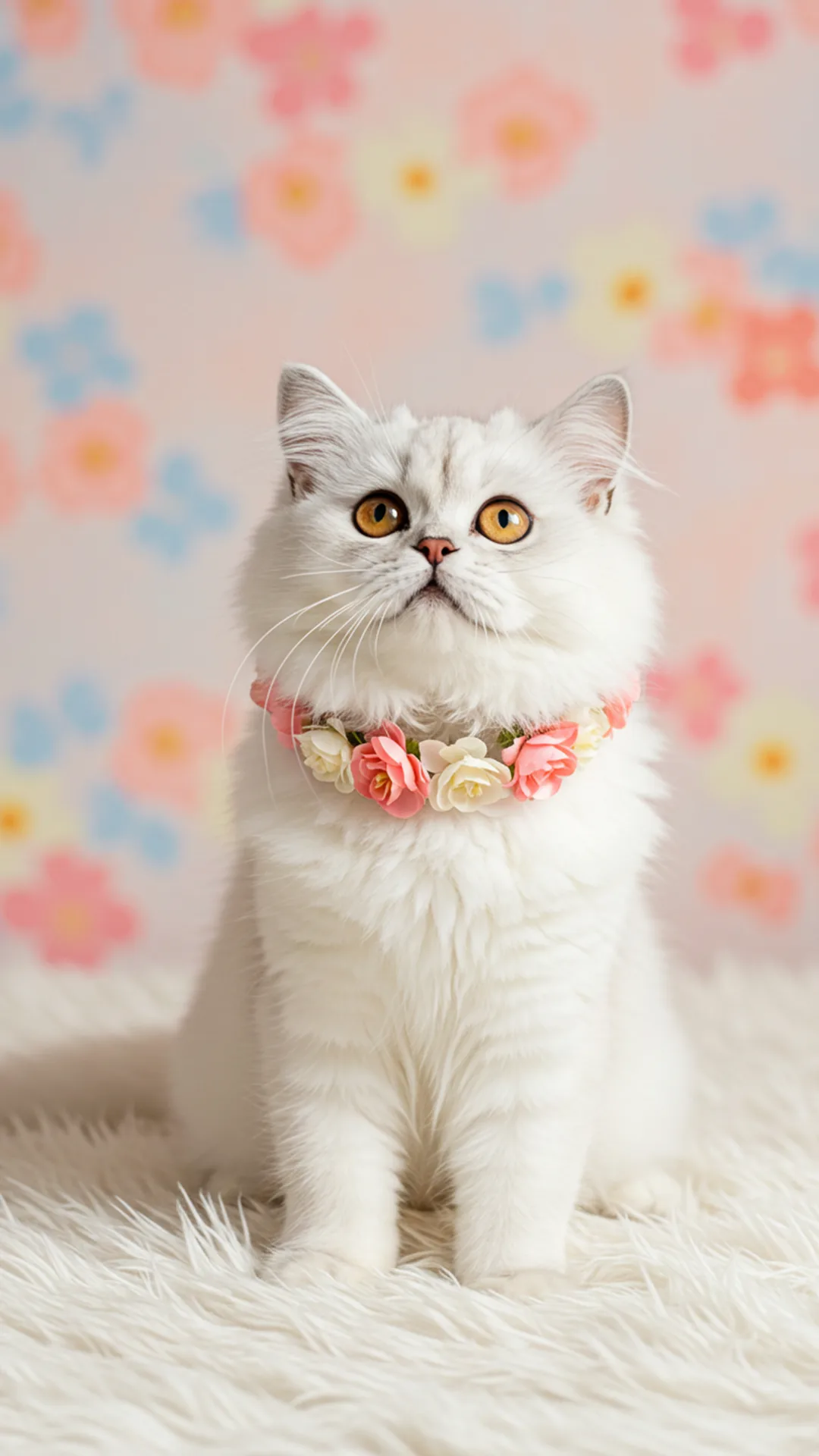 تُظهر هذه الخلفيات القطط الشيرازي بفراء أبيض أو كريمي على خلفيات وردية أو بتدرجات الباستيل، مما يمنح صورة متناغمة ومريحة للعين. تُعد هذه الخلفيات مثالية للبنات اللواتي يبحثن عن طابع أنثوي وناعم في أجهزتهن.